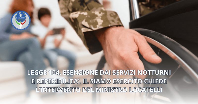 LEGGE 104. IL SIAMO ESERCITO CHIEDE L’INTERVENTO DEL MINISTRO LOCATELLI