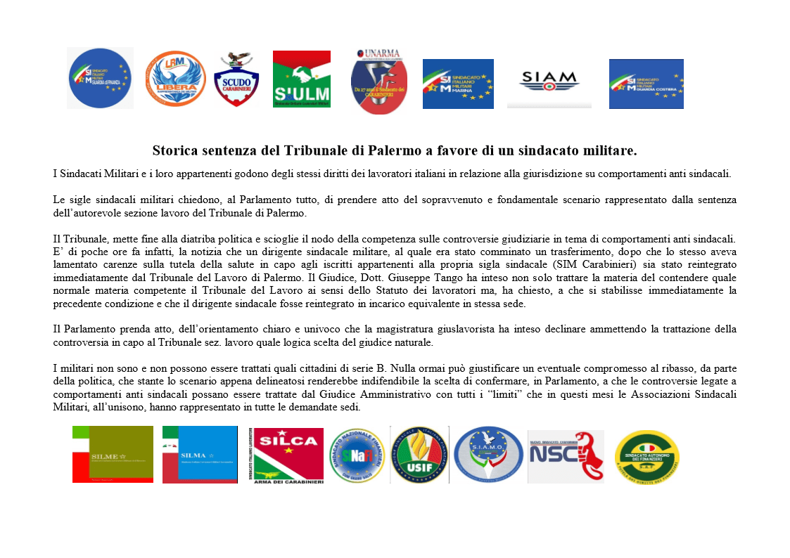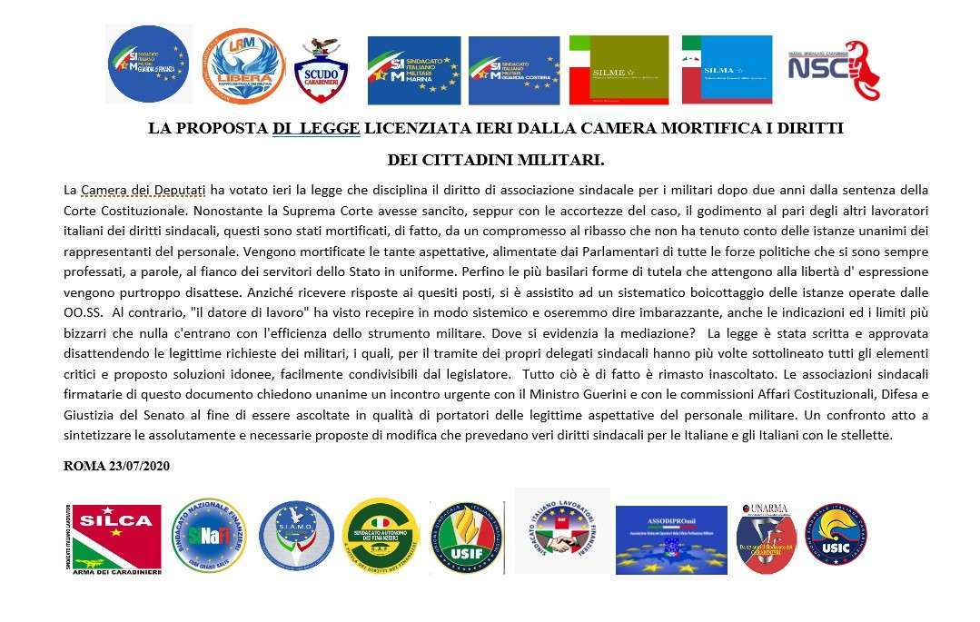 Contributo del S.I.A.M.O. Esercito sulle maggiori criticità della proposta di legge sui sindacati militari